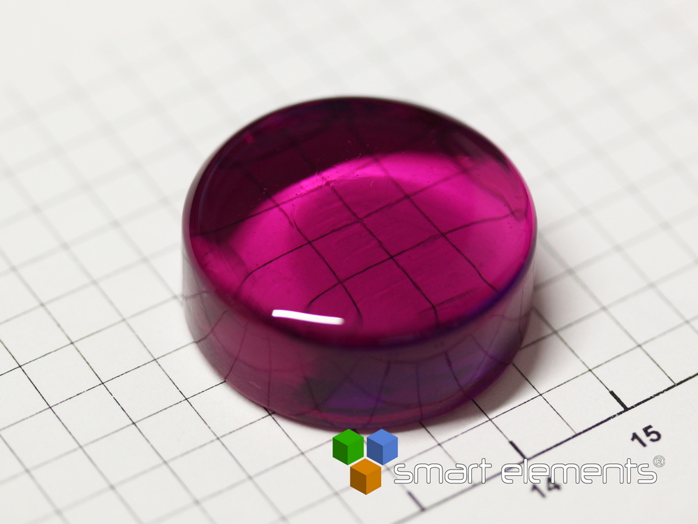 This strongly colored glass changing its color from wine red to dark blue depending of the wavelength of the used light and viewing angle, is used in optics.