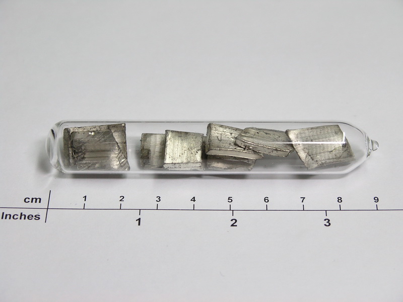 These pieces of Lithium metal were processed and filled under pure argon atmosphere to maintain the metallic surface shiny – sealed in ampoule under argon.