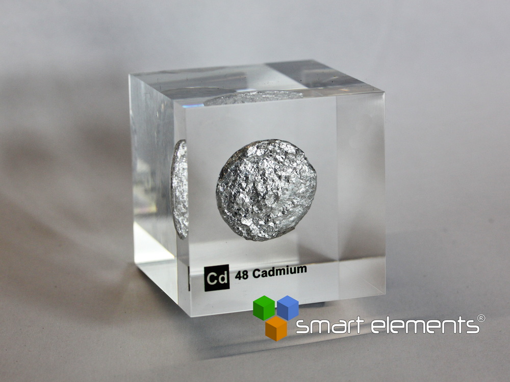 Cadmium Cd-  high pure & shiny Cadmium ingot ~30g embedded in 50mm acrylic cube