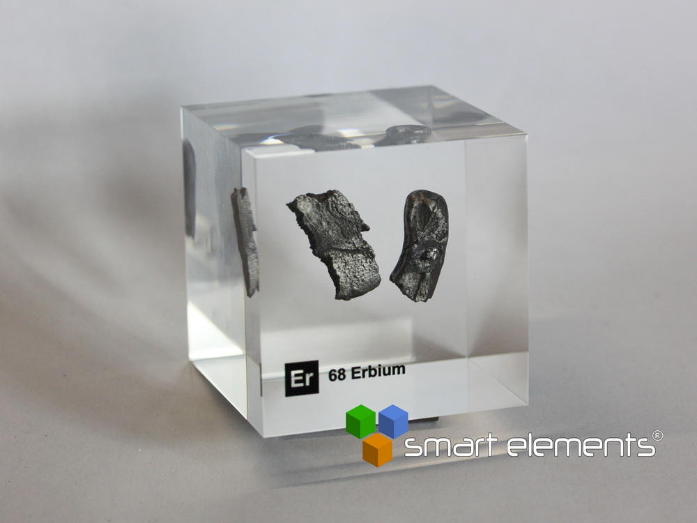 Erbium metal ,  pieces embedded in 50mm clear acrylic cube