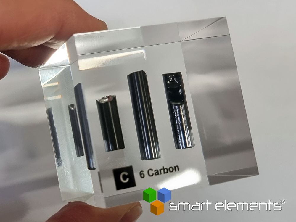 Carbon C – ~3 glassy carbon rods 99.99% purity embedded in 50mm acrylic cube