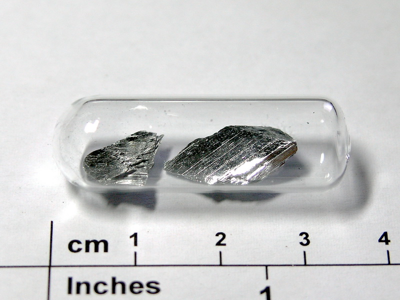 shiny crystalline pieces of high purity antimony  – 99.9999% purity in ampoule