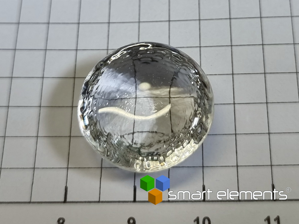 Diameter: ~20mm – height ~ 8mm – weight ~ 6.23 grams – Material: LuNaP glass Lu2O3 17 mol%