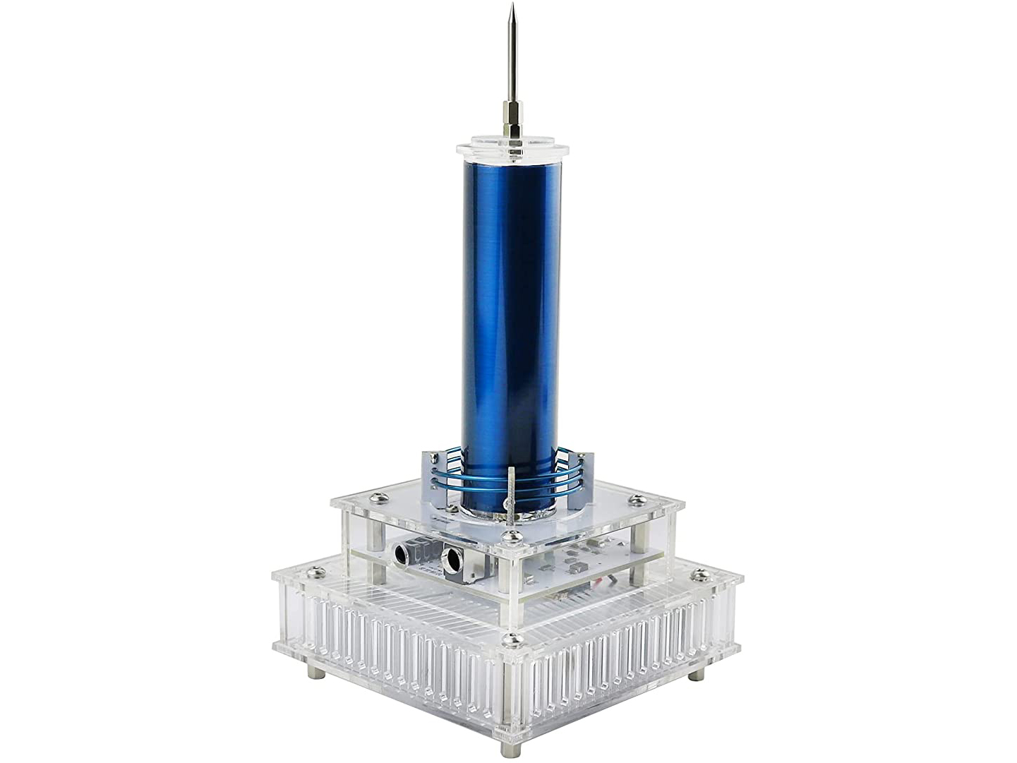 - This is a multi-functional compact Tesla coil. It produces a high frequency and high voltage electric field and produces nice sparks at the top pin.