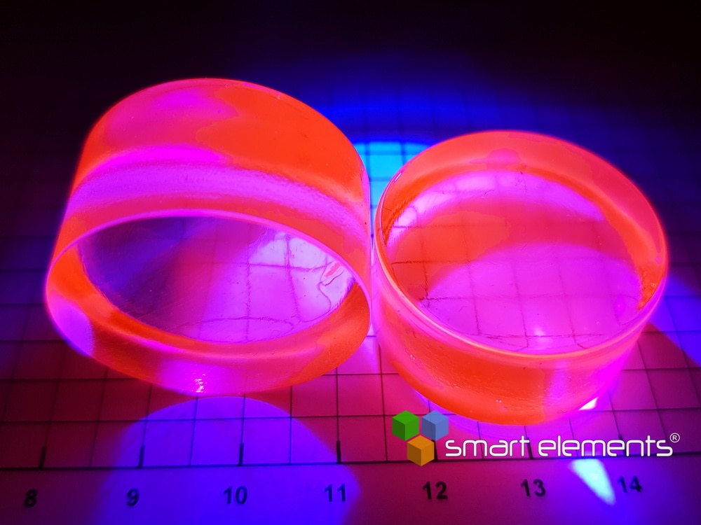 Diameter~ 40mm – height ~ 16mm – weight ~ 36 – 40 grams – Material: BaP: Eu3+ 8 mol%