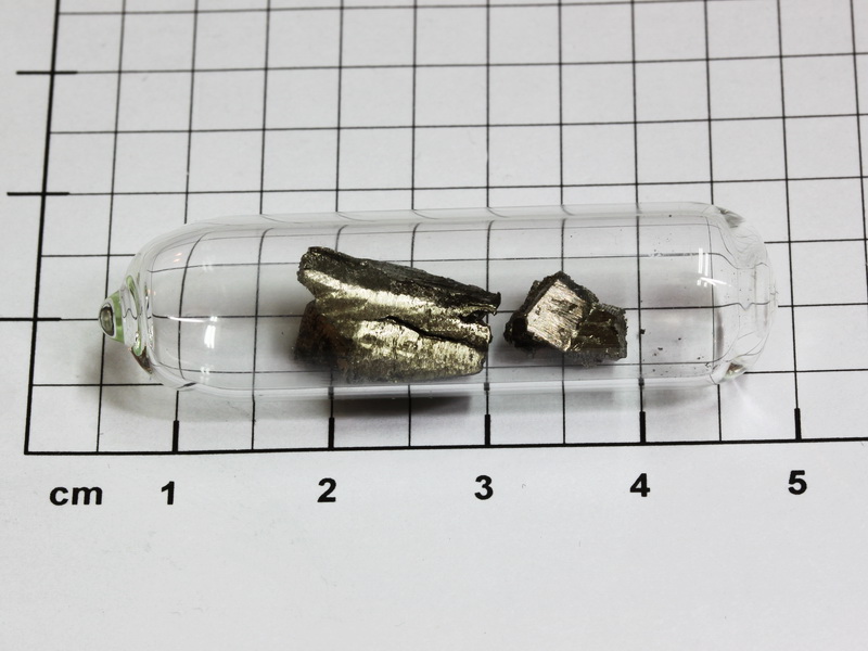 One of the least abundant and most reactive Lanthanides. Sealed in attractive ampoule under argon to prevent its desctruction by oxydation.