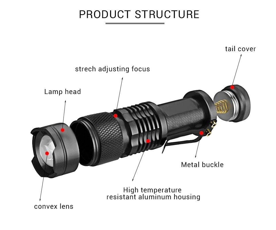 Features: Super mini size, UV Flashlight. Skid-proof design & waterproof design. Adjustable focus range for different usage, stretching to adjust its focus. Clip for convenience carry. Working voltage is wide and can utilize the batteries in the largest extent. Uses: money detector, night fishing, according to drift, according to the prayer beads, according to traces of forensic class of special purpose industries use.