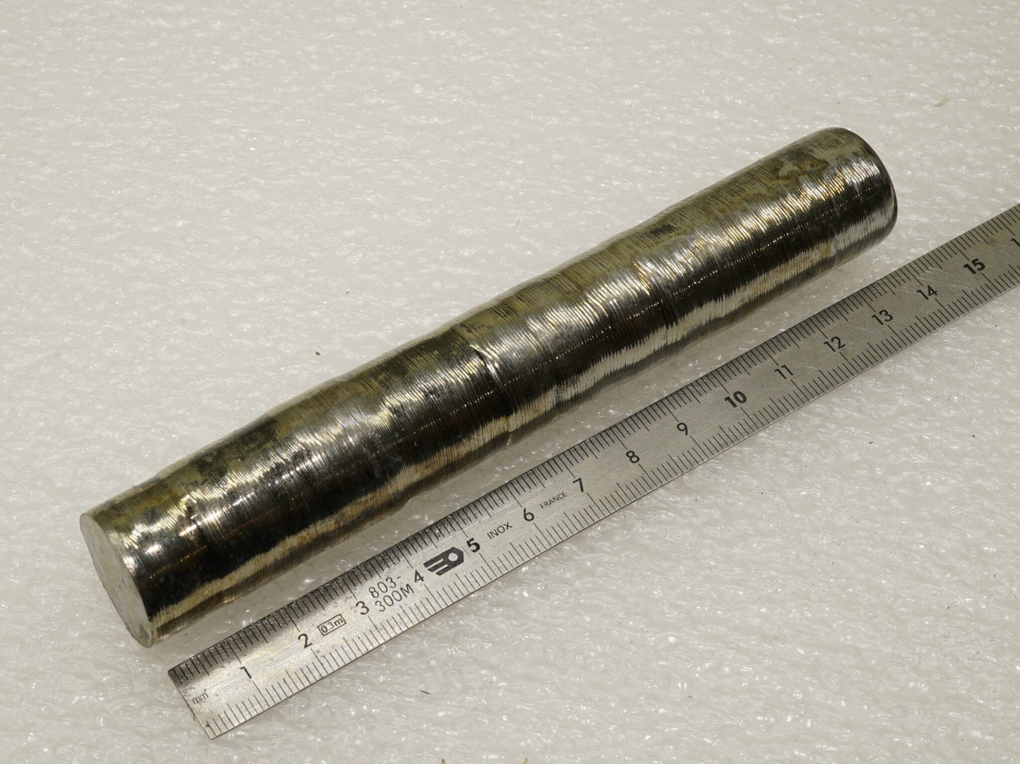 Zone refined molybdenum single crystal, weighing 540 grams, represents a high-purity form of molybdenum produced through the zone refining process. This technique involves melting a small region of the material and slowly moving it along the length of the crystal. As the molten zone moves, impurities are pushed along, concentrating them at one end and leaving behind a highly purified crystal. This method is particularly effective for materials that need to have very low levels of impurities.